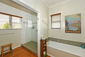Tucked away from the road, this well maintained, solid 4 bedroom home will delight. Spacious lounge with heat pump, extra living/dining area with compact yet functional kitchen. Near new gorgeous bathroom and laundry plus a separate toilet. Lovely character features include native timber flooring and some lead light fittings.