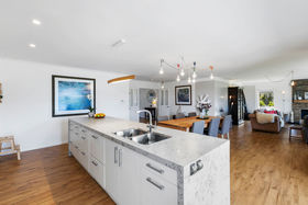 Majestic views only pilots normally see. You are King of the castle! Beautifully designed executive home with European flair. Schist stone blends easily with the surrounding native & exotic bush setting. Designer kitchen flows through to the dining area and opens up to a warm inviting living area with open fire for ambiance and stacker doors which in turn open to a patio area with views to the valley below. The master bedroom has a walk in wardrobe and ensuite with doors opening onto your own patio with a outdoor sauna with sweeping views. A heat pump will keep you warm in winter & cool in summer and 2 good size double bedrooms are separated by a generous modern bathroom and plenty of storage in the hallway. Straight off the entry is another toilet for guests in the European tradition .A state of the art under floor gas heating system enables you to control different zones in the house & also provides continuous hot water for endless showers & baths. Solar panels keep the energy bills down & reduce your carbon foot print as well. This steel framed home will last a life time & the over sized garage gives plenty of space for a busy life style with storage in the roof a bonus extra. Double glazing & future proof cabling allows for additional outdoor heating or a indoor surround sound system to be fitted by the new owners. The deadline treaty closes Wednesday, 3rd of February 2021, at 12pm. IT WILL NOT BE SOLD PRIOR! Please call Robyn on 027 210 4309 or Pete on 027 391 0088 Email; robyn.pete@tallpoppy.co.nz